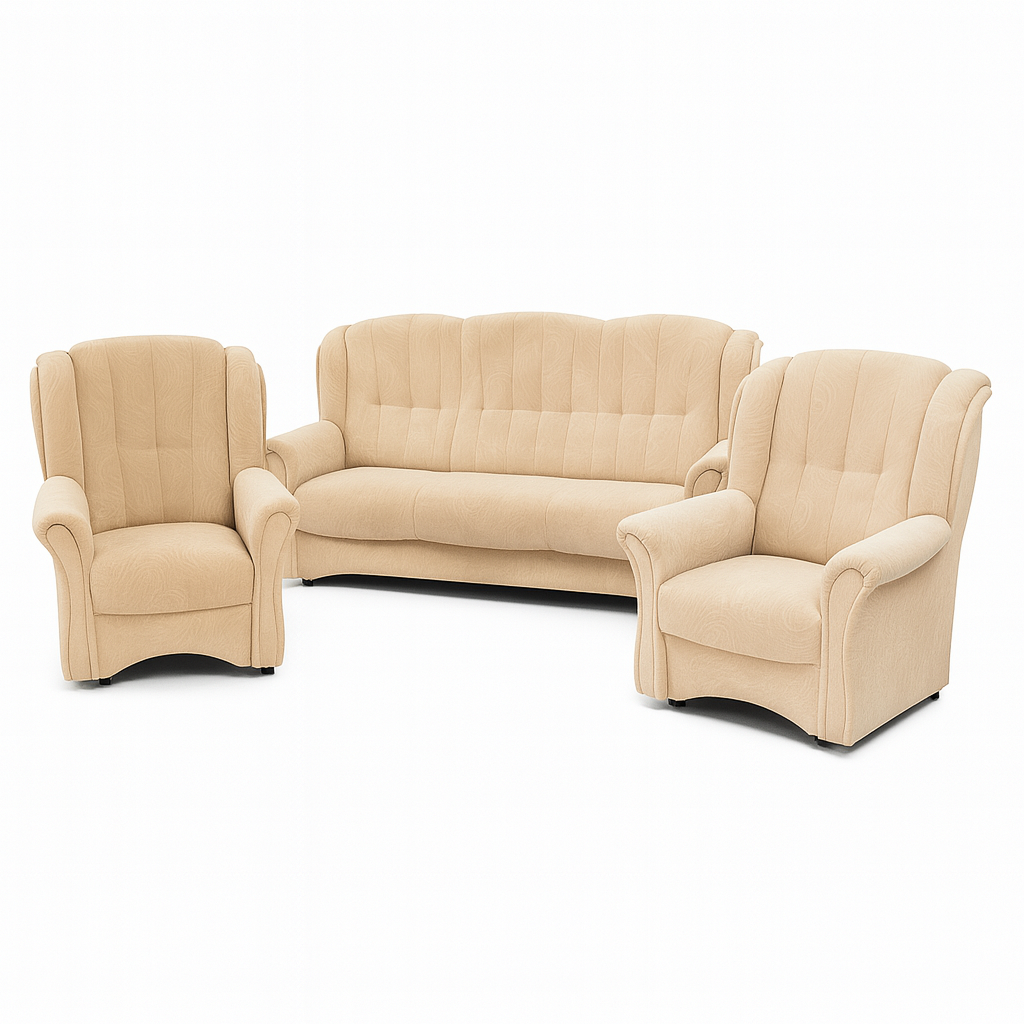 3 Sitzer mit Schlaffunktion; Bettkasten; Federkern; Sessel auf Rollen; Farbe: Beige